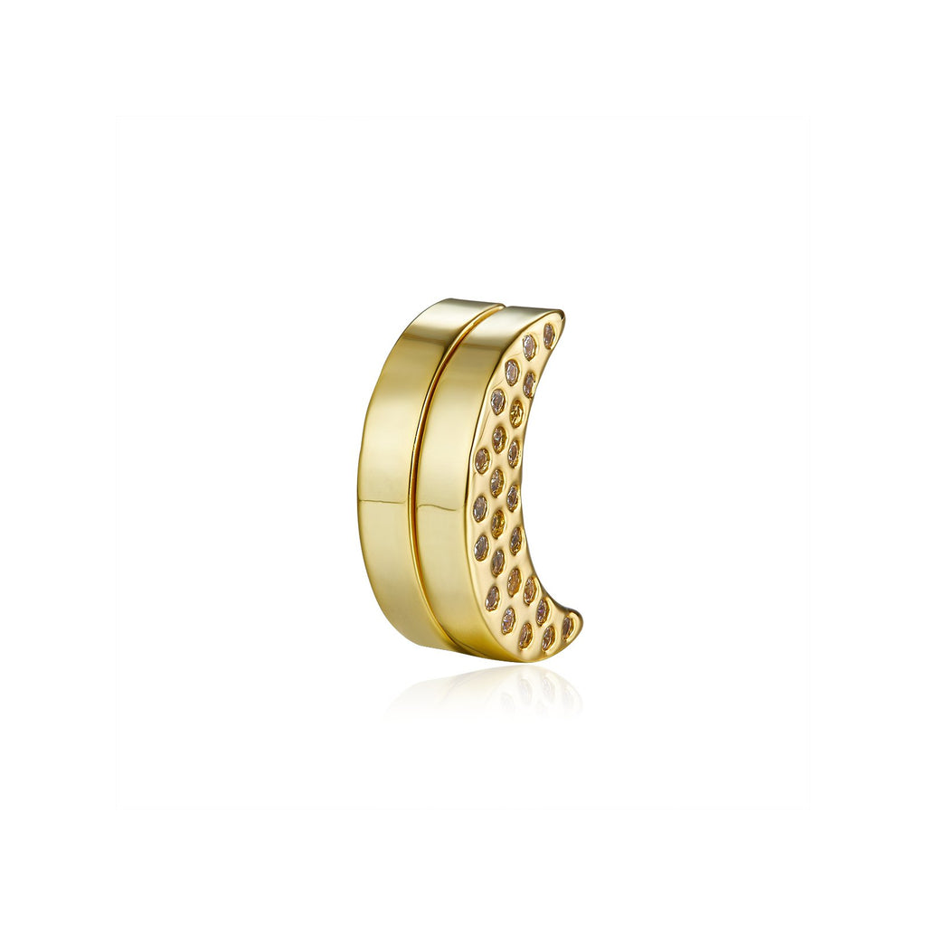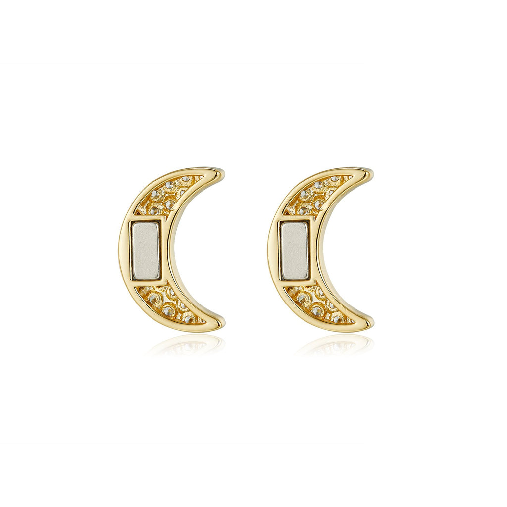 Our Ramadan best seller, loved by over 10,000 women worldwide. Your new Ramadan or event-ready essential hijab accessory: CRESCENT 14K Gold Hijab Scarf Magnets designed to keep chiffon, silk, jersey, and viscose perfectly in place. Our 14k gold design with CZ pavé stones adds a touch of minimalist luxury to elevate your next Ramadan outfit. Elegant in design with an ultra-strong magnetic hold, these magnets snap together in a second and hold, taking you from day to night.